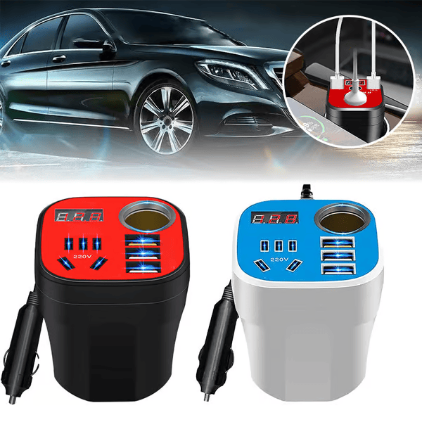 Enhance your driving experience with the Car Mounted Cup Type Inverter Converter QC Charger – the compact, efficient, and safe solution for powering all your devices on the go.